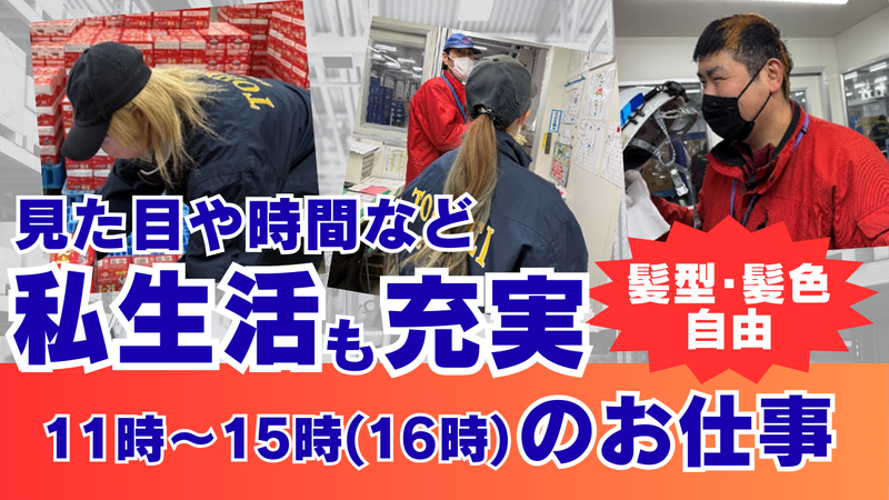 職場環境 乳製品を扱うため、倉庫内は冷蔵温度に設定されていますが、 厚着・防寒対策OKなので、寒さが不安な方も安心して作業できます。 作業はチームで進めるため、分からないことがあればすぐに声をかけられる環境です。 無理なスピードや一人に負担が偏ることはありません。