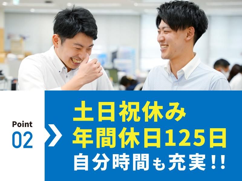 休日休暇 週休2日制(土日祝休み) ※年2回だけ、社内研修のため土曜出社あり ■年間休日125日 ■年間休日とは別に年5日計画有給あり(実質年間130日休み) 【休暇】 GW、夏季、冬季、慶弔休暇 有給10日(入社半年後に付与) ■産前・産後休暇 ■育児休暇 ■介護休暇 ■結婚休暇 ◎産休・育休取得実績多数! 男性営業が8ヵ月の育児休暇を 取得した例もあります。 当社では、子育てなどの ライフイベントがあっても 変わらずキャリアを作っていけます。 < プライベートも充実 > 基本土日祝休みで、夏季休暇や 冬季休暇などの長期休暇もたっぷり。 2024年のGWは10連休でした! 働くときは働く、 休むときはしっかり休む。 仕事も、プライベートも 充実できる環境だからこそ、 どちらも全力で取り組めるんです。