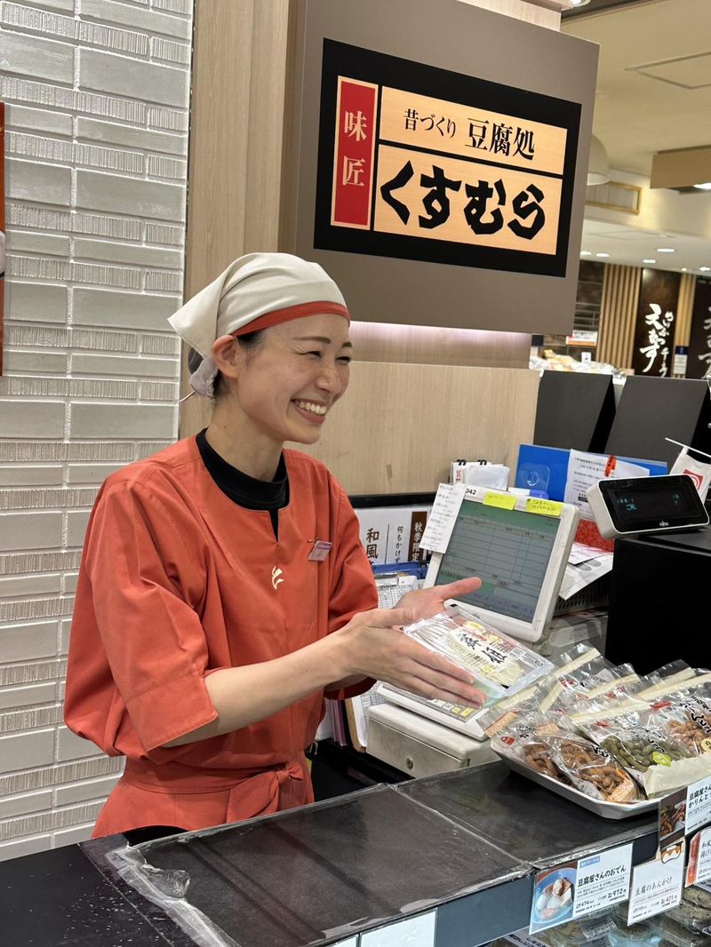 仕事内容 \ 百貨店で、お客様一人ひとりに寄り添う接客を / くすむらの豆腐・惣菜販売スタッフ募集 / 大正3年創業 創業100年を超える豆腐専門店 \ 創業111年の老舗豆腐店「豆腐処味匠くすむら」が運営する 松坂屋名古屋店 地下食品売場での販売スタッフ募集です。 豆腐・湯葉・豆乳・おからなど、 からだにやさしい大豆製品や惣菜・スイーツを通して、 名古屋のお客様に「毎日の食卓に寄り添う味」をお届けしています。 お客様との会話や、商品説明を大切にする売場です。 ―――――――― ◆ 仕事内容 ―――――――― 松坂屋名古屋店 地下食品売場での接客・販売業務です。 ・お客様へのお声がけ、商品のご案内 (「どうやって食べるの?」「どれが人気?」など) ・商品の陳列・補充 ・レジ業務※入店前に研修あり。 ・開店作業(レジ開設、納品受入、商品陳列など)※早番 ・閉店作業(レジ締め、売上記帳、片付け・清掃 など)※遅番 お客様は落ち着いた年齢層の方が多く、 慌ただしすぎない、会話を大切にした接客が求められる売場です。 ―――――――――――――――――――――― ◆ 未経験の方もご安心ください ―――――――――――――――――――――― ・入社後は、本社で商品知識や接客マナーを基礎から学びます ・松坂屋での入店前研修・レジ研修も実施 ・配属後もしばらくは、正社員や先輩スタッフが横についてフォローします 百貨店勤務や販売が初めての方、 ブランクのある方も、無理なく始められる体制です。 週2〜・扶養内OK!家事や育児との両立歓迎 ――――――――――― ◆ 働く魅力 ――――――――――― ◎ スタッフ特典あり 自社商品が50%OFFで購入できます。 「夕食の一品に助かる」「健康を意識するようになった」と好評です。 ◎ 「ありがとう」がやりがいに 常連のお客様も多く、 顔なじみになって会話を楽しめるのも百貨店販売ならではです。 ―――――――――――――――――――― ◆ 特に土日祝・年末に働ける方は歓迎! ―――――――――――――――――――― 来客が多い時期はチームで協力しながら売場を支えます。 忙しさの中にも、 「一日やり切った」という達成感があります。 ※土日祝・年末は時給アップあり ―――――――――――――――――――― ◆ 勤務時間 ―――――――――――――――――――― 【早番】8:00~17:00(休憩60分/実働8時間) 【遅番】11:30〜20:30(休憩60分/実働8時間) ・週2日~OK 子育てが一段落した方、 夕方以降の時間を活かして働きたい方に向いています。 ↓Instagramの職場紹介アカウントはこちら↓ https://www.instagram.com/kusumura_shokai/