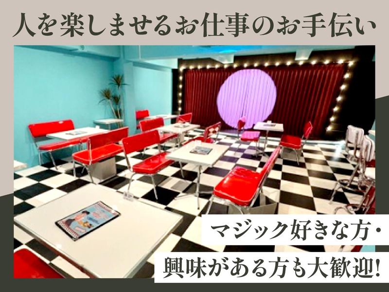仕事内容 ✅週1~1日4時間~勤務OK! ▶プライベートと両立して勤務可能 ✅髪型髪色・ネイル・ピアス自由◎ ▶ご自身の個性・強みをキャラとして活かせる◎ ✅未経験から演者としても活躍が可能! ▶簡単なマジックを覚えてマジシャンに◎ \あなたも演者の一人に!!/ ==================== 「なんで!?」があふれる不思議な空間 **イリュージョンランドなんで屋!?** で一緒に働きませんか? ==================== ≪お任せするお仕事は≫ ■ホール ・お客様のご案内 ・料理やドリンクの提供 ■キッチンの補助 ・ドリンク作りの補助 ・簡単な盛り付け ■マジックショーのサポート ・小物をステージにもってきたり 希望の方は ■マジックを覚えて主演も可能! ============= ✨すべて未経験でもOK!✨ ============= ホール・キッチンの補助はもちろん マジック経験がなくても大丈夫◎ マジックもプロの先輩がイチから教えます! 近くに先輩が絶対いるので初めての方も安心◎ お客様の 「えっ!?」「すごい!」というリアクションを 目の前で感じられる、やりがい抜群の仕事です。 =================== ✨あなたらしさを強みにキャラへ還元✨ =================== ホールでのお仕事、マジシャンとしてのお仕事、 関係なくここで働くみなさんは1人のキャスト。 お客様に覚えてもらうのはもちろん、 ご自身の色を出して働いていただけたら と思っています。 そのため ・髪型髪色 ・ネイル ・ピアス も 奇抜すぎなければ特に規定もありません。 あなたらしさでお客様を楽しませてくださいね! ============ ≪「なんで屋」について≫ ============ 神戸三宮の マジックバーから始まった「なんで屋」。 現在は神戸から全国へ マジックの魅力を届けるべく活動中! 未経験からマジシャンとして活躍する スタッフも多数活躍しており、 そのメンバーと一緒に働くあなたの経験も きっと特別なモノになるはず! HPにてメンバーも紹介中◎ ぜひご覧ください! https://www.nandeya-magic.com/member