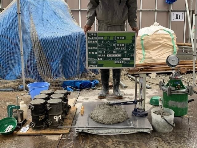 建築現場のコンクリート検査スタッフ