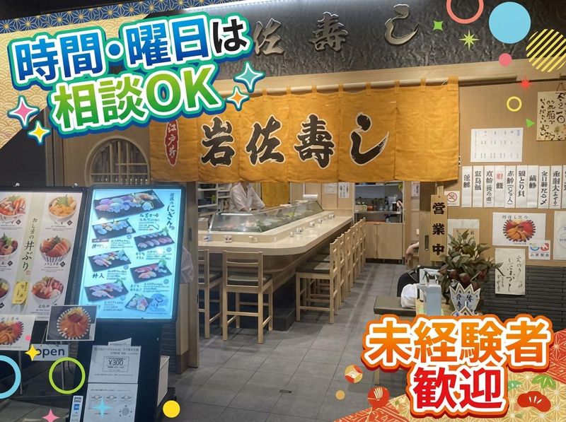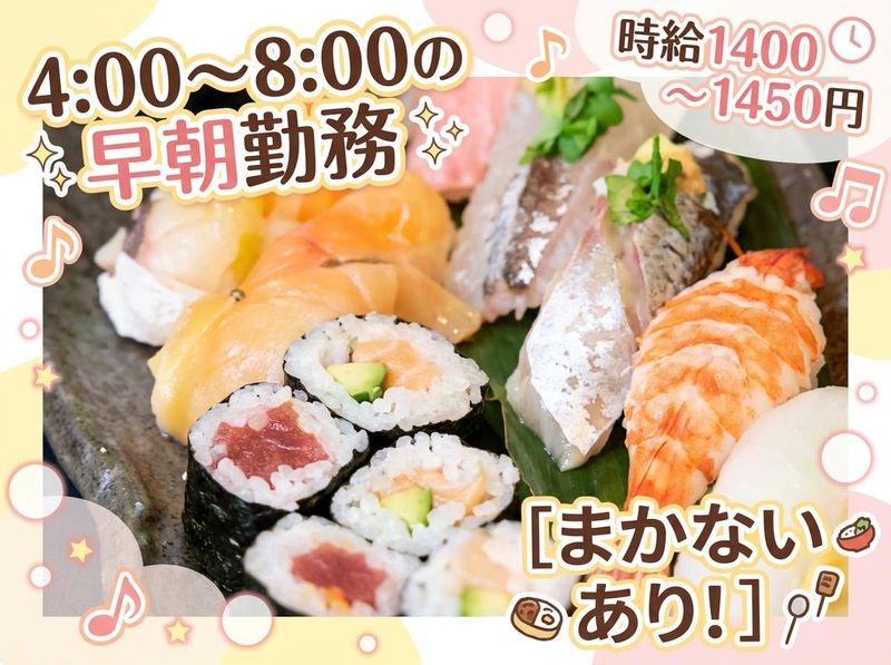 職場環境 豊洲市場内の活気ある寿司店で、観光客や常連のお客様が多く来店します。スタッフ同士の連携を大切にしており、落ち着いて業務を覚えられる環境です。 喫煙所:喫煙所あり(屋内)