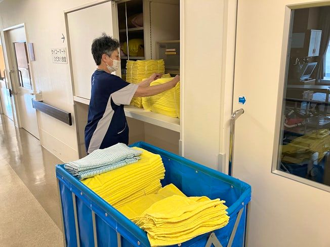 仕事内容 工場から届いたクリーニング済みの寝具類・タオル、白衣などの数をチェックし、担当の方が持って行きやすいように保管庫に収納します。 また、各階で使用済みの寝具類・タオルなどを保管場所から作業室まで台車で運び、仕分け、数のチェックをします。 その他、入院生活で必要なコップなどアメニティ用品の管理業務や洗濯業務です。 適度に身体を動かすお仕事です。 ※シーツ交換など病室での作業や患者様に触れる作業は一切ありません。 仕事内容の変更 あり(会社が定める範囲※本人の希望を考慮)