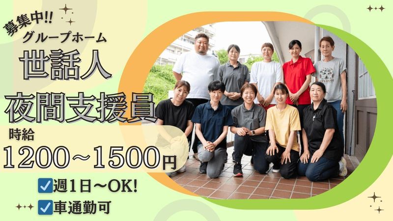 仕事内容 ─┘─┘─┘─┘─┘─┘─┘─┘─┘ ▼働きやすい理由&魅力▼ ✅ 無資格・未経験でも始められる安心のサポート体制 ✅ シフトは週1日からOK、プライベートとの両立がしやすい ✅ 1勤務で効率よく稼げる高時給1500円 ✅ マイカー・バイク通勤OKで通勤ラクラク ✅ Wワークや副業も可能 ─┘─┘─┘─┘─┘─┘─┘─┘─┘ ≪業務内容≫ 知的障がいや精神障がいのある方々が暮らすグループホームで、夜間の生活をサポートするお仕事です。 ↓↓ ▼ ↓↓ 具体的なお仕事 ↓↓ ▼ ・就寝前の準備やサポート ・巡回による安否確認 ・日誌や記録の作成 ・簡単な清掃作業 ・朝のスタッフへの引継ぎ >>>経験ゼロでもこれで安心 1|入社後の研修で、仕事の流れや注意点を丁寧に説明します。 2|はじめは先輩スタッフと一緒に業務を行い、一つずつ覚えていきます。 3|困ったことがあれば、いつでも先輩や社員に相談できる環境です。 4|シンプルな業務内容で、すぐに慣れることができます。 ⇒ 誰かの役に立ちたい、誰かの生活を支えたいという気持ちがあれば大丈夫です。 【この環境で働く魅力など】 01.│「利用者さんの笑顔がやりがい」 →利用者さんが安心して夜を過ごせるようサポートすることで、感謝の言葉や笑顔に触れる機会が多く、大きなやりがいを感じられます。 02.│「プライベートと両立しやすい」 →週1日から勤務可能で、Wワークや副業もOK。自分のライフスタイルに合わせて無理なく働けます。 03.│「風通しの良い職場環境」 →困ったことや分からないことがあれば、すぐに相談できる雰囲気があり、安心して働けます。 <✨他にはない、ここで働く魅力✨> →夜間の時間帯を有効活用して、人の役に立つお仕事ができます。高時給なので、短時間で効率よく稼ぎたい方にも最適です。