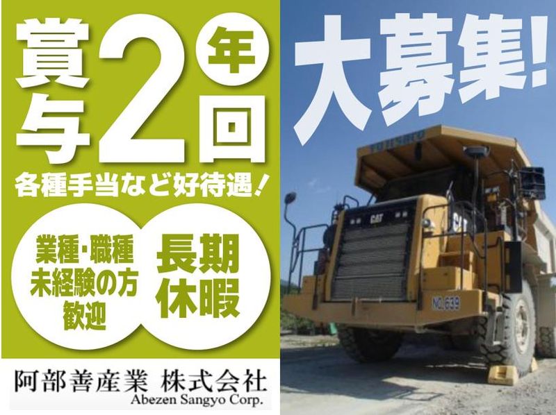 仕事内容 《会社の次世代を担う新しい仲間を募集》 ▶1988年創業!地域密着企業で安定勤務 ▶業務&需要拡大につきスタッフ募集 ▶将来の会社を担う管理職も目指せる! =================== \\ ここに注目! // ⭐重機免許不要!未経験大歓迎!⭐  ̄ ̄ ̄ ̄ ̄ ̄ ̄ ̄ ̄ ̄ ̄ ̄ ̄ ̄ ̄ ̄ ̄ 経験・資格・スキル・知識は一切不問! 必要な知識は、入社後にOJT研修など 充実研修&万全なサポート体制でじっくり 教えます! 必要な資格も入社後に取得できます♪ ⭐充実の待遇で長期安定勤務が叶う⭐  ̄ ̄ ̄ ̄ ̄ ̄ ̄ ̄ ̄ ̄ ̄ ̄ ̄ ̄ ̄ ̄ ̄ ̄ 昇給・賞与年2回・各種手当(資格など) 結婚・出産・慶弔金支給制度 退職金制度・保養所 など福利厚生も充実! ⭐長期休暇あり!メリハリある働き方⭐  ̄ ̄ ̄ ̄ ̄ ̄ ̄ ̄ ̄ ̄ ̄ ̄ ̄ ̄ ̄ ̄ ̄ ̄ GW・お盆・年末年始など長期休暇あり 仕事と私生活の両立が叶います♪ =================== 【 お仕事内容 】 秋田県湯沢市にある自社砕石場で 砕石・製造をお願いします。 《 具体的な仕事内容 》 ✅建設機械(重ダンプ、バックホー等) を使用した砕石・製造作業 ✅技術職としてプラント管理、 重機での採掘・現場作業など ※自社採石場の環境整備として、 スコップ作業や草刈りなどもあります。 ※冬季期間(1月~4月)は積雪のため ”宮城県仙台市”の工場へ出向があります。 =================== 【 未経験でも活躍できる環境 】 必要な知識・資格は入社後に全て取得 できます!仕事自体は非常にシンプル! 体を動かしながらのびのび働きたい方 には最適です。 無理なく自分のペースで働けますよ! 《入社後の流れ》 ⏩最初は先輩社員と一緒に重機に乗車し、 仕事内容や車両の運転など業務を 覚えていただきます。 ⏩必要な知識などは入社後の習得でOK! ⏩経験やスキルに応じてゆっくり教えて いきます。 将来的に会社を担う管理職を目指して 長く働いていただけます!! =================== 【阿部善産業株式会社について】 創業37年!地域に根ざした安定企業! 1988年7月の設立以来、当社は地域の インフラ整備を支える重要な役割を 担ってきました。 主な事業は、 ✅砕石(さいせき)という人工的に 岩石を破砕した土木建築資材 ✅がれき類や木くずなどの 産業廃棄物中間処理 ✅再生骨材の製造・土質改良事業 など これらは、人々の暮らしに欠かせない 素材やサービス。 だからこそ、当社の業績は常に安定 しています。 地域とともに歩み続ける当社で、 あなたも社会を支える仕事に挑戦しませんか? 《会社ホームページ》 http://www.abezen.jp/index.html