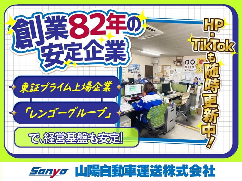 職場環境 創業から歴史が長く、東証プライム上場企業「レンゴー」グループで、働き方や雇用条件も改善を重ね、安心して働ける体制です。 TikTokも随時更新中で、会社の雰囲気を知って頂けます。 アカウント名【山陽自動車運送(@sanyojidosya)】
