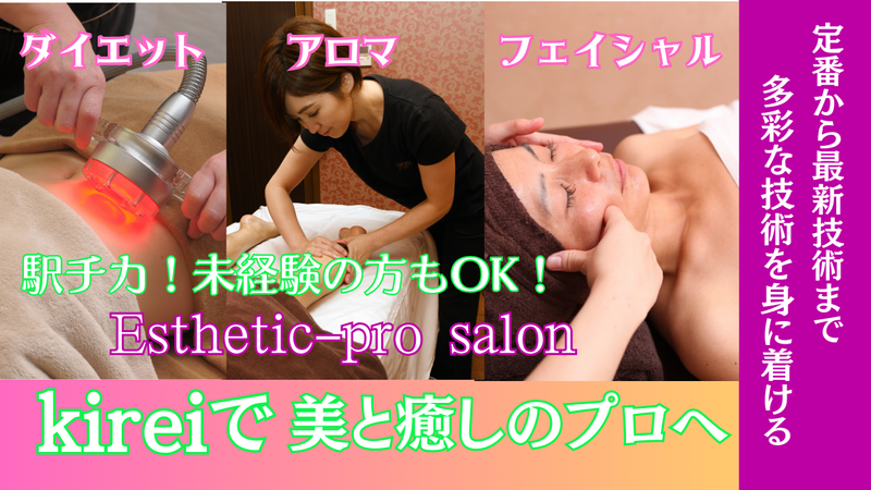 求めている人材 ◎未経験者歓迎 ◎副業・WワークOK ◎無資格OK ◎長期勤務歓迎 ◎週末や夜勤務できる方優遇! ┗勤務日数が少なくてもOK 経験よりも意欲重視の採用です。 「美容が好きor興味がある」 「本格的な知識・技術をつけたい」 そんな方は経験不問で大歓迎! 基礎から学べる環境をご用意しています。 ≪もちろん経験者も大歓迎≫ ・エステティシャン ・アロマセラピスト ・整体師 などの経験は当店でも活かせます。 さまざまなメニューがあるため、 技術の向上や幅を広げられる環境です。 開業支援制度もあるため、 将来独立を考えている方もぜひご応募ください!