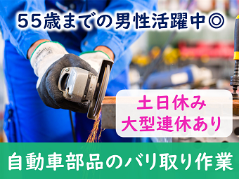 仕事内容 バリ取り業務◇時給1300円◎らくらくマイカー通勤OK♪覚えてしまえばルーティンワーク!もくもく作業したい方大歓迎!工場勤務未経験の方もしっかりサポートいたします! <仕事内容> 鋳造の工場内で自動車部品をグラインダーでバリ取りする業務です。 手のひらサイズの部品をひたすらバリ取りしていきます。 細かい作業は少なく単純作業なので、覚えてしまえばルーティンワークです! 未経験者の方も安心してお仕事に取り組めます。 もくもくとお仕事したい方におすすめ◎ 20代~50代の男性活躍中の職場です。 立ち作業でのお仕事です。 個人作業となります。 《環境》 冷暖房完備です。 ロッカー有り|休憩室完備 アピールポイント <仕事内容> 鋳造の工場内で自動車部品をグラインダーでバリ取りする業務です。 手のひらサイズの部品をひたすらバリ取りしていきます。 細かい作業は少なく単純作業なので、覚えてしまえばルーティンワークです! 未経験者の方も安心してお仕事に取り組めます。 もくもくとお仕事したい方におすすめ◎ 20代~50代の男性活躍中の職場です。 立ち作業でのお仕事です。 個人作業となります。 《環境》 冷暖房完備です。 ロッカー有り|休憩室完備 \充実した福利厚生/ ◎社会保険・雇用保険完備 ◎有給休暇有(6ヶ月経過後、10日付与)※規定あり ◎残業手当 ◎交通費支給(規定内) ◎確定拠出年金制度 ◎週払い制度(週3回対応) ◎お友達推薦制度あり(規定有り) ※1名につき3万円~10万円臨時給与として支給 ◎車(マイカー)・バイク通勤可(駐車場あり) ◎冷暖房完備 ◎制服貸与 ◎食事持参可 ◎ロッカー・休憩室利用可 ◎福利厚生プログラム (宿泊、グルメ、ショッピングなど大幅割引が受けられる10万アイテムのメニューがあります。)