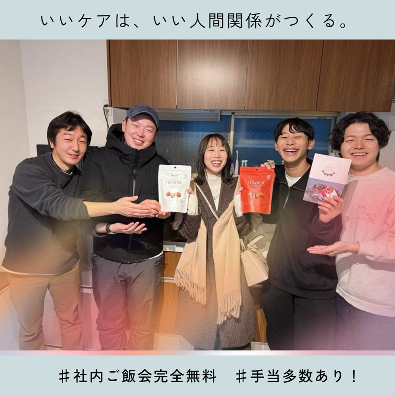 求めている人材 ◆対人コミュニケーションが好きな方 ◆新たな自分を見つけたい方 ◆無資格・未経験から新たなことに挑戦したい方 ◆社会に貢献する仕事がしたい方 ◆誰かの役に立つことが好きな方 ◆経験を活かして働きたい方 ◆主体的に考えて行動することが好きな方 資格や経験はなくてもOKです! 3日間で、全額会社負担で資格を取得できます。 重度訪問統合過程 ・・・・・・・・・・・・・・・・・・・・・・・・・・・・・・・・・・・・・ ⏩スタッフについて ・・・・・・・・・・・・・・・・・・・・・・・・・・・・・・・・・・・・・ 総数約120名(男性5割:女性5割) アルバイトの学生さんから定年後に働く方、 夢を追う俳優さんや芸人さんなど、 幅広い経歴、年齢層のスタッフが活躍しています。 未経験から始めた方が8割です! TVなど、メディア出演も多数実績があります!