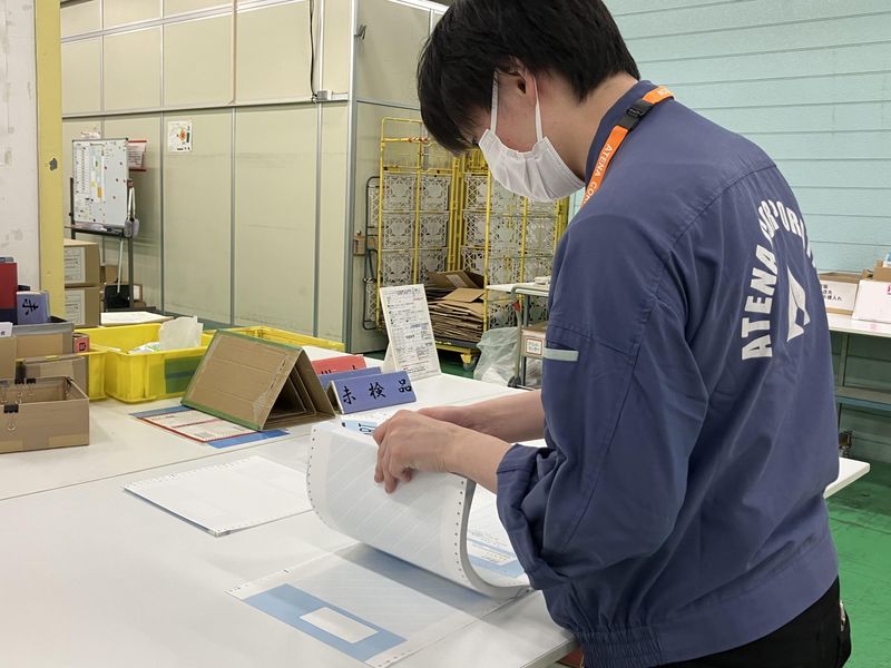 仕事内容 <空調のきいた快適な作業場での軽作業> ◇少人数の職場でモクモク作業 大人数が苦手な方にはピッタリ! ◇リーズナブルな社員食堂完備 昼食の心配なし♪ 【業務内容】 ・業務用プリンターの操作(出力指示など) ・印刷した帳票の汚れや位置ズレチェック ・チェックした帳票を発送先ごとに仕分け・梱包 ・梱包した荷物を配送業者さんへ引き渡し ※用紙の束など、一部重量物があります 【1日の流れ】 9:00~ 夜勤スタッフからの引継ぎ内容確認、 梱包作業準備 ↓ 10:00~ プリントされた帳票のチェック、梱包 ↓ 12:00~社員食堂でランチ ↓ 13:00~梱包、配送業者さんへ引き渡し ↓ 14:00~帳票の仕分け ↓ 15:00~帳票のプリント、仕分け ↓ 17:00~片付け、夜勤スタッフへの引継ぎ ↓ 18:00 退勤 ずっと立ちっぱなしではなく、 仕分けの際は座って作業しています♪ それぞれの作業は数人のチームで 工程ごとにローテーションで作業 飽きずに続けられるモクモク作業です! 少しでも興味がある方はご応募ください♪