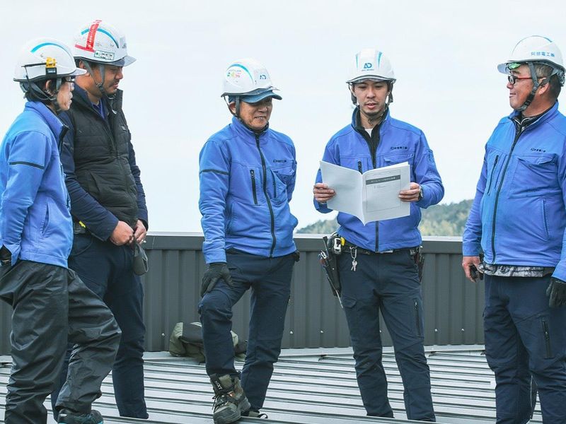 仕事内容 現場は、ひとでできている。 未経験から3年で、現場を任される人へ。 阿部電工は、未経験でも現場リーダー(職長クラス)を目指せる育成設計で採用しています。 高圧・建築電気・太陽光まで幅広く学べて、分業が少ないから成長が早い。 まずは見学からでも構いません。 ■ なぜ阿部電工だと「成長が早い」のか 理由は2つあります。 ①扱う現場のバリエーションが圧倒的に広いから。 一般的な電気工事会社はビルや住宅が中心ですが、阿部電工の施工実績には以下のような現場が並んでいます。 ⚫︎高圧受変電設備の新設・更新工事(工場・病院・商業施設・物流倉庫等) ⚫︎太陽光発電設備工事 ・メガソーラー発電所の施工 ・公共施設・商業施設・工場などへの設置工事 ⚫︎一般電気工事(公共施設・工場・ビル・商業施設等) ・空調設備工事 ・EV充電器などの電源工事 ⚫︎古賀市役所関連の公共工事(JR駅照明改修・街路灯修繕等) ⚫︎能登半島沖地震の石川応援工事(2024年) 高圧受変電設備は、ビルや工場の電気を支える大元の設備。 この分野を手がけられる会社は多くない。 施工エリアも福岡県を中心に、佐賀・大分・熊本・長崎・山口・愛媛・広島・石川まで広がっています。 ②日本テクノエンジ株式会社など大手の「一次下請け」の立場で仕事をしているから。 二次・三次下請けだと「言われた作業だけやる」になりがちですが、一次下請けは元請けと直接やりとりするので、設計意図の理解や、段取りの判断を求められる。 だから技術の吸収スピードが加速します。 ■ 仕事内容 ― 高圧・建築電気・更新工事 阿部電工は、商業施設・医療福祉施設・ビルなどの電気工事を幅広く手がけています。 新築・改修工事での配管配線・器具取付から、高圧受電設備の更新工事まで。 太陽光発電設備や空調設備の施工にも対応しています。 中でも得意とするのは「高圧受電設備」の工事。 ビルや施設の電気を支える大元の設備です。 参入障壁が高い分野で、これができる会社は多くない。 ここで技術を身につければ、どこに行っても仕事に困ることはありません。 さらに、太陽光発電の設計・施工も事業の柱のひとつ。 脱炭素(カーボンニュートラル)が国策として進む中、再生可能エネルギーの技術を実務で身につけられるのは、今後数十年にわたって価値を持つスキルです。 分業が少ないのも阿部電工の特徴です。 配線から試運転まで一貫して関われるので、「この設備は自分がつけた」と言える手応えがあります。 進捗が目に見える結果として確認できるのも、当社の仕事の魅力です。 ■ 3年間の育成ロードマップ 未経験から3年で、現場リーダー(職長)を育てるための育成設計があります。 【1年目:基礎】 先輩がマンツーマンでつきます。 道具の名前、安全ルール、基本作業。 最初は資材運びと補助作業から。 この間に第二種電気工事士の取得を目指します(一部費用に対する会社補助あり、詳細は社内規定に準ずる)。 【2年目:自走】 一人で動ける場面が増えてきます。 配線を任されたり、図面や資料を見て段取りを考えたり。 後輩が入ったら、教える側にも回り始めます。 このあたりで、高圧受変電設備や公共施設の工事にも本格的に関わるようになります。 【3年目:任される】 現場リーダー(職長)として、現場全体の管理・判断を担うポジション。 第一種電気工事士、施工管理技士を目指す段階です。 元請けとの打ち合わせにも同席するようになり、「作業をする人」から「現場を動かす人」に変わります。 ■ 向いている人 / 合いにくい人 ⚫︎この仕事に向いている人: ・技術を身につけて、自分の市場価値を上げたい ・「自分がやった」と言える仕事がしたい ・高圧受変電やメガソーラーなど、スケールの大きな現場で働くことにワクワクする ・教わりながら、着実にステップアップしたい ⚫︎合いにくい人: ・残業ゼロが最優先の方(繁忙期は残業が40時間程度あります。残業代は全額支給) ・指示されたことだけをこなしたい方 ・変化に関わりたくない方(第二創業期の会社です) ■ 働く環境 ― チーム・社風・距離感 少人数の会社なので、一人ひとりの存在が大きい。 20代から60代まで年齢層は幅広く、ベテランが若手に技術を渡し、若手がベテランを支えます。 社長との距離も近く、意見を言いやすい環境です。 威圧で人を動かすことはしない。 安全に関わる確認だけは、全員が真剣にやる。 任せるけれど、放置しない。 失敗したら原因を一緒に振り返って、次につなげる。 勤続25年以上のベテランが定年後も再雇用で第一線に立ち続けているのは、この会社の居心地の良さを示す何よりの証拠です。 入社5年目・Kさん(前職:飲食業、未経験入社): 「将来のために専門的なスキルを身につけたいと思っていた時に、電気工事を手がけている阿部電工を知りました。 未経験でもチャレンジできる環境に惹かれて入社。 専門知識がなくても、現場で一つひとつ覚えていけるのが阿部電工の良さ