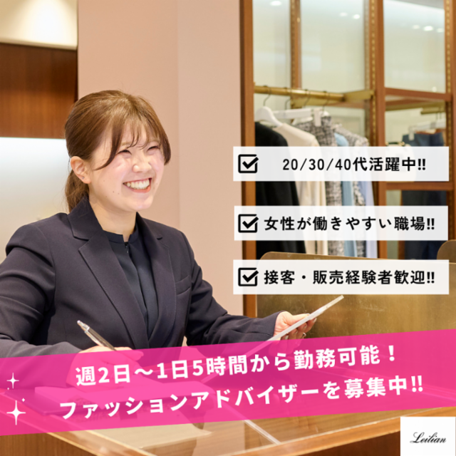 仕事情報 ● 仕事内容 \「”好き”を仕事にしませんか?」/ 洋服が好き、人と話すのが好き、 そして誰かに喜んでもらいたい。 そんなあなたの温かい気持ちを、私たちは歓迎します。 あなたの新しい一歩を、レリアンで始めませんか? 準社員でも正社員並み 【”準”社員でも、”正”社員並みの安心】 月給制の安定収入に加え、社会保険は完備。 賞与も年2回しっかり支給します。 アルバイトとは一線を画す、確かな安心感の中で 長くキャリアを続けられます。 ライフスタイルにフィット 【あなたが主役の、柔軟な働き方】 【月15日~21日勤務】の間で、あなたの希望を 最優先にシフトを組みます。ライフスタイルに合わせた 働き方をご相談ください。 洋服代の心配なし! 【上質な制服を貸与】 「毎日何を着よう…」と悩む必要はありません。 レリアンの上質な制服をご用意していますので、 無理なく、オシャレに働けます。 あなたは”パートナー” お任せするのは、単なる「販売」ではありません。 お客様一人ひとりの人生に深く寄り添い、 信頼という名の資産を築く、本質的な仕事です。 ★Point:個人ノルマは、一切ありません!★ 数字に追われることなく、あなたの経験を存分に活かし、 お客様と真摯に向き合える環境をお約束します。