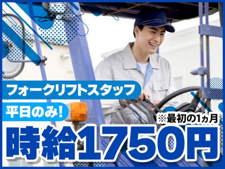 仕事内容 <作業内容> リーチリフトを使って、倉庫内で医薬品の運搬や整理を行います。 狭い通路や高い棚でもスムーズに作業できるリーチリフトを使うので、効率よくお仕事ができます。 <作業の特徴> *リフト作業経験・資格が活かせる:リフト作業の経験を活かせる現場です。経験があれば、即戦力として活躍できます。 *安心のサポート体制:経験豊富なスタッフがいるため、実務経験を活かしてすぐに馴染んでいただけます。 *体を動かす仕事:体を動かす作業が好きな方や、安定した収入を得たい方におすすめです。 <おすすめポイント> ●高時給1,750円スタート(1ヶ月間) 2ヶ月目以降も1,550円で安定収入! ●交通費補助あり 車通勤もOKなので、通勤ラクラク! ●平日勤務(週5日) 土日祝日はお休みなので、プライベートも充実できます!