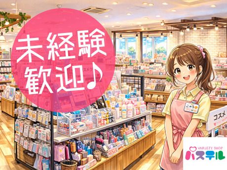 仕事内容 カワイイ雑貨がいっぱい!バラエティグッズの接客・販売♪あなたの“好き”を活かして働けますよ♪ 話題のキャラクターグッズから ファンシー雑貨・アクセサリー・ アパレル雑貨・生活雑貨まで オンナノコが好きなカワイイ商品が たくさん揃っているお店です♪ 初めはレジ、接客、ラッピングから スタートするので未経験でも安心☆ 慣れてきたら売り場作りと商品の発注 も担当していただきます。 ★好きなことを仕事に!!  ̄ ̄V ̄ ̄ ̄ ̄ ̄ ̄ ̄ ̄ ̄ 自分が「良いな」と思って選んだ商品を お客様が手に取り買って頂けた時は とってもウレシイ♪ 毎日様々な商品が入荷してくるので わくわくがいっぱい☆ 変化があり、退屈しません! お客様だけでなく自分たちも楽しくなる 売り場を一緒に創っていきましょう! ★カワイイ雑貨がいっぱいのお店  ̄ ̄V ̄ ̄ ̄ ̄ ̄ ̄ ̄ ̄ ̄ ̄ ̄ ̄ ̄ パステルは小さなお子さんから大人まで 幅広い年代に人気の雑貨店! 東日本を中心に展開しています♪