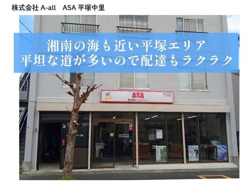 仕事内容 【求人のポイント】 ――――――――――――――――― ✅経験不問で月給29万~45万円+歩合 ✅2年間の育成プランで着実に成長できる ✅新聞販売店の経験者は優遇 ✅賞与年2回支給(支給規定有り) ✅ワンルームマンションの寮完備 敷金、礼金0円 ✅家賃は半額負担で2万6500円 ✅引っ越し費用も全額会社負担 ✅入社祝い金10万円(支給規定有り) ――――――――――――――――― 【仕事内容】 幹部候補としての育成スタッフの募集です! ――――――――――――――――― ◆朝刊・夕刊の配達 ◆既存顧客の管理(更新のご案内) ◆新規客への訪問 ◆集金(月末月初) ◆管理業務補助 ◆店長・副店長のサポート ※2年間の育成プランがあり 主任→副店長→店長と ステップアップ前提で育成します! ※更新のご案内について 6ヶ月・1年など購読の契約期間は様々。 契約期間の終わりが近づいたお客様に 契約の更新をいただくお仕事です。 ―――――――――――――――――― ⭐1日の流れ 0:00~4:30 チラシの折込、朝刊配達 5:00~11:00 休憩(6時間) 11:30~13:00 ミーティング及びお客様訪問 13:30~15:30 夕刊配達 16:00~18:00 ミーティング及びお客様訪問 ※実働は8時間程度 ⭐Aさんの生活サイクル 18時/勤務終了後、食事 20時頃/仮眠(3.5時間) 23時半/起床して0時10分より勤務開始 5時/朝刊配達を終えて、食事・入浴 6時/就寝(5時間) 11時/起床 11時30分/勤務開始 【職場のご紹介】 ――――――――――――――――― ⭐スタッフのご紹介 正社員3名、アルバイトスタッフ6名、 派遣スタッフ1名の10名で毎日の配達を 行なっています。 人懐っこいキャラや、のんびりタイプ、 まじめにコツコツ、様々なタイプが活躍中。 はじめは配達、営業共に自分のペースで進めて下さい。 *正社員プロフィール 入社6年/45歳(前職:新聞販売所) 入社4年/35歳(前職:アパレル) 入社1年/50歳(前職:新聞販売所) *所長(代表)プロフィール 41歳の時に朝日新聞販売店に転職。 住み込みで働き、 副店長~店長を経験し、49歳で独立。 バイク好きで 温和な性格と優しい口調で みんなをまとめるリーダーです。 ⭐きれいに整頓されたオフィス 事務スタッフはじめ、みんなで協力して 快適な職場を作っています。 【ASA平塚中里のここがオススメ】 ――――――――――――――――― ⭐歩合給や手当が充実 毎月の契約更新数に応じた歩合給や、 一定数まとまった場合のプレミアム手当、 所長賞などの特別手当など、 頑張った分はしっかり還元される 制度があります。 ⭐未経験から年収UP 現在の社員は450万~600万円。 多い人は月収50万円以上を 年に何回も獲得しています。 賞与は年2回支給あり (昨年実績は1回5万円~15万円)。 ⭐寮完備&引っ越し費用全額会社負担 職場の2階・3階のワンルームマンションに 即入寮が可能です。 (1~2部屋が空いています) 家賃は半額負担で月2万6500円、 引っ越し費用も会社で負担するので、 「初めての一人暮らし」や、 「生活費を抑えてお金を貯めたい」 という方にもお勧めです。