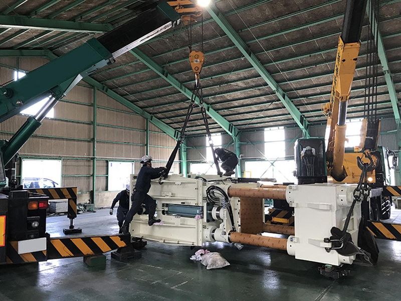 大型機械を運ぶ作業スタッフ(重量鳶静岡)