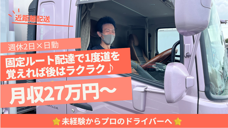 仕事内容 _________________ 安定収入と働きやすさが自慢! *生活を守る、安心のドライバー職*  ̄ ̄ ̄ ̄ ̄ ̄ ̄ ̄ ̄ ̄ ̄ ̄ ̄ ̄ ̄ ̄ ̄ 浜松市を拠点に、 地域に密着した運送サービスを提供しています。 現在、ドライバー経験問わず、 当社の”想い”に共感し、 安定した環境で長く活躍してくれる 店舗配送ドライバー(正社員)を募集しています! \\この求人のポイント// ⭐未経験者も経験者も大歓迎! ⭐日勤のみ&早めの終業でプライベート充実! ⭐月給27万円以上!頑張りは給与で還元! ⭐固定ルート配送で道も覚えやすい! ⭐充実のサポート体制で安心スタート! ✅仕事内容について  ̄ ̄ ̄ ̄ ̄ ̄ ̄ ̄ ̄ ̄ ̄ ̄ ̄ ̄ ̄ ̄ ̄ 市場(浜松市旧南区エリア)から 近隣のスーパーへ青果物を配送するお仕事です。 <1日の流れ(例)> ・市場で青果物を積み込み ・担当エリアのスーパーへ配送(1便あたり3~4店舗) ・市場へ戻り、再度積み込み ・午後の配送(1便あたり3~4店舗) ・業務終了!お疲れ様でした! ※1日2便の固定ルート配送です。 一度道を覚えてしまえば、あとはスムーズ! 毎日違う場所へ行くストレスはありません。 <配送物について> ・配送するのは新鮮な青果物のみ。 様々な荷物を扱うことはありません。 量産品のライン作業とは違い、 日々の配送を通じて地域の方々の食卓を支える、 社会貢献度の高い、やりがいのある仕事です。 ⭐未経験からプロのドライバーへ!  ̄ ̄ ̄ ̄ ̄ ̄ ̄ ̄ ̄ ̄ ̄ ̄ ̄ ̄ ̄ ̄ ̄ 必要なのは普通免許(※要確認:準中型・中型免許の要否)と意欲だけ! 最初は先輩ドライバーが同乗し、 運転のコツやルート、荷扱いの方法などを 基礎から丁寧に教えます。 「ドライバーの仕事は初めて」 「土地勘がない」 という方も、安心してスタートできる環境です。 困ったことがあれば、 いつでも周りの仲間や会社がサポートします! ⭐20代〜50代まで幅広い年代が活躍中!  ̄ ̄ ̄ ̄ ̄ ̄ ̄ ̄ ̄ ̄ ̄ ̄ ̄ ̄ ̄ ̄ ̄ 現在、若手からベテランまで、 様々な年代のドライバーが活躍中です。 お互いに助け合いながら和気あいあいと働いているので、 あなたもすぐに馴染めるはずです! シニアの方からの応募も歓迎しています。 ⭐社員の生活を守る、安心の環境  ̄ ̄ ̄ ̄ ̄ ̄ ̄ ̄ ̄ ̄ ̄ ̄ ̄ ̄ ̄ ̄ ̄ 「社員の生活を守るのは会社の役目。」 これは、当社の社長が大切にしている想いです。 社員が安心して長く働けるよう、 待遇や福利厚生の整備に力を入れています。 月給27万円以上という給与水準に加え、 日々の頑張りは各種手当や賞与でしっかりと評価。 多くのドライバーが高収入を実現しています。 日勤のみ、早めの終業、週休2日制で、 家族との時間や自分の趣味の時間も大切にできます。 ワークライフバランスを重視したい方にも ぴったりの環境です。 ╭━━━━━━━━━━━━━╮ 「この会社を選んで良かった」 社員にそう思ってもらえる会社へ ╰━v━━━━━━━━━━━╯ 安定したルート、無理のない働き方、 そして頑張りが報われる給与体系。 万が一のトラブル時も、 会社全体でサポートする体制が整っています。 新しい環境でも、安心して飛び込んできてください。 前向きな気持ちで仕事に取り組めるよう、 優しい仲間たちが見守っています。 遠慮なく頼ってくださいね! <会社概要について>  ̄ ̄V ̄ ̄ ̄ ̄ ̄ ̄ ̄ ̄ ̄ ̄ ̄ ̄ ̄ ̄ ̄ ̄ (ここに会社名、設立年、事業内容、所在地などの基本情報を記載します) 地域に根ざし、安全・確実な配送サービスを通じて、 お客様と地域社会に貢献しています。 社員一人ひとりが安心して、 やりがいを持って働ける会社づくりを目指しています。 ぜひ一度、面接でお話ししませんか?