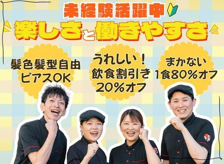 資格 ・主婦・主夫さん、シニアの方 ・学生OK(高校生、大学生、専門生など) 幅広い世代の方が活躍中 ・副業、Wワークも可能 ・初バイトOK ・飲食業が未経験スタートOK <希望のシフトをご相談ください> 皆さんのライフスタイルに合わせた ご希望の働き方を最大限考慮させていただきます! 「スキマ時間を有効活用したい」 「子供の帰宅時間に間に合うように」 「子育ても落ち着いたので土日メインで」 私生活と無理なく両立しながら働ける環境で お仕事をスタートしませんか? <以下のご経験も生かせますよ> 焼肉、居酒屋、イタリアン、フレンチ レストラン、ファミレス、でのご経験