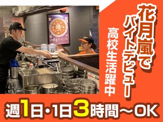 仕事情報 ● 仕事内容 ラーメン店にてお客様の接客、お料理を提供したり、 調理補助を中心に活躍していただきます! まずは元気に「いらっしゃいませ」ができればOK! 心遣い・気遣い・仲間を大切にできる方であれば大歓迎です! 未経験でも安心! バイト自体初めての方でも、 全国に200店舗近くの店舗を展開してきた当社ならではの 手厚い教育プランでしっかりバックアップします! まずはあなたのできること・簡単なことから お任せしていきますので安心してくださいね。 らあめん花月嵐のこだわり 看板商品「嵐げんこつらあめん」を筆頭に、 有名シェフ・ラーメン店主やタレントとコラボした 期間限定メニュー等を提供する次世代型ラーメン店! 店内はどこか懐かしく、でも他とちょっと違う雰囲気。 ラーメンを更ににおいしく食べられる工夫を散りばめています。 シフトは自己申告制! 自分の予定優先でOK!短時間勤務も相談に応じます♪ 平日のランチのみのパートさんや夜だけ働く学生バイトさん 独立を目指すフリーターさんなど、 たくさんのスタッフが自分の都合に合わせて イキイキとバイトしています! メリット盛りだくさん! 幅広い世代のスタッフが活躍している当店。 月1回登場する新メニューもいち早く試食できます◎ ラーメン好きにはたまりません♪ 求人への応募が初めての方も大歓迎! 居心地の良さ抜群のお店で私たちと一緒にバイトしましょう!