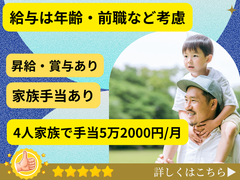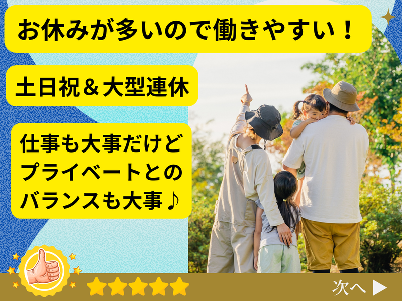景気に左右されず、休日も福利厚生も充実。家族手当で5万円も!