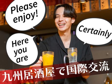 仕事内容 <スタッフインタビュー> 海外のお客様に「This is Mentaiko, a famous dish from Kyushu!」と伝えた瞬間、目を輝かせて「Sounds delicious!」と笑顔で返してくれました。 九州熱中屋は、ただの居酒屋ではありません。 九州の魅力的な料理を提供する場でありながら、異文化が交差し、思いがけない交流が生まれる場所です。 外国から来たお客様に九州料理の美味しさや文化を伝え、彼らの「美味しい!」という感動に立ち会えるのは、この仕事ならではのやりがいです。 もちろん、日本人のお客様も多く、九州料理の話題で会話が弾むことも。 「九州って、こんな美味しいものがあるんですね」 と驚かれた時には、まるで九州の“観光大使”になったような気持ちになります(*´▽`*)  ̄ ̄ ̄ ̄ ̄ ̄ ̄ ̄ ̄ ̄ ̄ ̄ ̄ ̄ ̄ ̄ ̄ ̄ ̄ ̄ ̄ ココがポイント! *【九州の魅力】 新鮮な九州食材を使った料理と、賑やかで温かい雰囲気が楽しめる! *【異文化交流】 海外からのお客様と交流できる! *【英語を活かせる】 「このお料理は九州の郷土料理です」など、語学力が活かせる! 語学を活かして、直接海外のお客様と笑顔で交流できる! *【柔軟なシフト】 勤務時間や日数は相談可能!学校や趣味とも両立できる! *【メリット満載】 新しい友達や人脈が広がり、異文化を学ぶ楽しさがいっぱい!  ̄ ̄ ̄ ̄ ̄ ̄ ̄ ̄ ̄ ̄ ̄ ̄ ̄ ̄ ̄ ̄ ̄ ̄ ̄ 【一緒に働くスタッフ】 10代,20代,30代,40代の学生、フリーター、主夫・主婦パート活躍中! 初めてのアルバイトはもちろん、レストラン,カフェ,喫茶店,居酒屋などの 飲食店経験者、ゲーム・アミューズメント施設, カラオケ店などの接客経験者も大歓迎です! 《ホールスタッフのお仕事》 ・お客様を席までご案内 ・注文取り(メニューをタッチするだけで簡単!) ・料理運び(少しずつでも大丈夫!) ・お会計 ・テーブルの後片付け、準備 など。 ≪飲食店での経験者大歓迎!≫ カフェ、ファミレス、居酒屋はもちろん、レストラン(和食・イタリアン・フレンチ等)、焼肉店、ラーメン店、ベーカリー、スイーツ店など、前職のお店のジャンルや規模は一切問いません。ホールやキッチンでの基本的な業務経験だけでなく、仕込みや洗い場といった専門ポジション、バリスタやバーテンダー、パティシエといった技術職の経験をお持ちの方も大歓迎です。大手チェーン店で学んだ効率的なオペレーションも、個人経営のお店で身につけた丁寧な仕事も、どちらも貴重なスキルです。ブランクがあっても全く問題ありません。あなたの貴重な経験を、即戦力としてしっかり評価し優遇します!