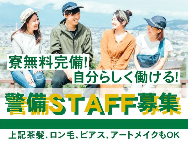 仕事内容 自分らしいありのままの姿で警備しませんか!! 寮無料完備で生活費も抑えられるのでお財布にも優しい!! あなたの生活サポートも万全!! 寮無料完備! 茶髪・ロン毛・ピアス・アートメイクもOK! シンプル業務で安定◎ 正社員登用も有 40代~60代活躍!異業種からの転職多数 交通誘導業務をお任せします。 ・車両誘導業務 ・歩行者誘導業務 歩行者や車両が安全に通行出来るよう誘導と案内をお願いします 出張面接対応中 あなたのご希望の場所で面接可能です!! 面接交通費もかかりませんのでお財布にも優しい! 【未経験者大歓迎】 経験・知識・技能は不問! 販売員・建設業・事務職など、異業種からの転職者も多数! 若手からシニアまで幅広い世代が活躍しています。 年代問わず始められ、安心して働ける環境が当社には整っています。 【会社、そして人がいいから働きやすい】 各種手当が充実しており、頑張りが認めてもらえる環境です。 ・将来的には正社員を目指したい! ・もっと自由に自分のペースで働きたい! ・駅チカ、自宅の近所など希望の勤務地働きたい! ・安定を手に入れたい そんな声にもしっかりお応えできます。 ぜひご応募ください! 【資格取得奨励制度あり】 ・交通誘導検定2級 ・自衛消防技術試験 ・防災センター要員講習・自衛消防業務講習 ・上級救命講習 など警備業で重要な資格をはじめ、 多彩な国家資格・民間資格の受験費を会社が負担。 資格を取得された後は、資格取得手当を支給します。