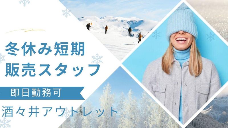 仕事内容 / 酒々井アウトレット 冬の短期スタッフ募集 \ 期間は【即日~冬休み終わる迄】 の短期でOK! 冬休みが短い方は1月迄でもOK! 冬休みが長い方は3月迄でもOK! やりながらそのまま継続も大歓迎^^ 勤務期間についてはご相談下さい! シフト柔軟に対応します。 『大学生の長期冬休み』 『転職活動中』 『出来るか心配だからお試し短期』 『販売のお仕事に興味がある』 『旅行にいくお小遣い稼ぎ』 等そんな方にお勧めです^^ ======================== ≪お仕事内容≫ 〇店頭で接客販売、レジ、レジ補佐等 既存スタッフがメインに接客にいくので既存スタッフのフォローをお願いします。 販売、接客経験がある方は積極的にお声かけして下さい。 〇バックヤード業務 商品がお店に沢山到着しますので 検品/品出し/在庫整理/配送/等、作業のお仕事もお願いします。 未経験歓迎! 短期のお仕事なので難しいお仕事はナシ! 先輩スタッフがフォローしますので安心して下さいね! ======================== (^^)/ まずは希望を教えてください ご希望の勤務日数や時間・ブランドなどをお伺いします。 その他、「髪色・ネイルが自由なところ」 「オープニング」 「がっつりシフトに入れるところ」や 「Wワーク」など期間限定や少ない日数でも勤務も可! 希望条件でもOK!お伺いしたうえであなたに合うお仕事をご提案させて頂きます。 取り扱いブランド多数あり 【 ジャンル 】 ・アパレル(メンズ・レディース・キッズ) ・シューズ(メンズ・レディース・キッズ) ・バッグ(メンズ・レディース) ・アパレル雑貨 ・スポーツウェア ・雑貨・小物 ・ラグジュアリー ・子供服 ・旅行用品 人員状況によりご希望に沿えない場合もあります。ご了承くださいませ。 (^^)/スピード採用 ・履歴書不要 ・簡単リモートWEB面談対応 気軽な面談ですぐお仕事出来ます♪ 【オススメポイント】 成田空港近くの酒々井アウトレット! インバウンドのお客様も多く 『英語』『韓国語』『中国語』 話せる方や語学勉強中の方活躍出来ます!