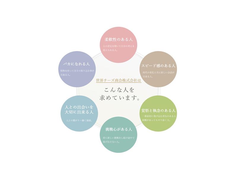 職場環境 1960年の創立以来、 ナチュラルチーズの直輸入・卸を 中心に事業を展開してきた当社。 お客様の要望にお応えして 安定した成長を続けています。 喫煙所:喫煙所あり(屋外)