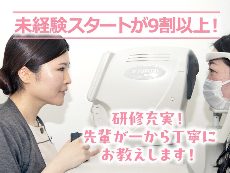 仕事内容 ~・~・~・~・~・~・~・~ ◆完全週休二日制! ◆10時or10時30分出社で朝もゆっくり♪ ◆残業ほぼなし! ◆有休取得率100%♪ ◆20代・30代の女性多数活躍中! ◆スタッフのほとんどが未経験から入社♪ ~・~・~・~・~・~・~・~ 【仕事内容】 コンタクトレンズの処方を中心とした 眼科医院でのお仕事です。 ・検査 視力検査と簡単なヒアリングの後、 患者様にあったコンタクトレンズをお試し。 ・受付 クリニックに来院の患者様への受付対応。 ・お会計 診察後の患者様のお会計。 レセプト計算など。 【未経験の方大歓迎】 経験や知識は一切不要! 医療の知識も全てゼロからお教えします! ◆入社後のイメージ コンタクトレンズの種類や 目の構造について勉強 ↓ 先輩とロールプレイングで 検査の流れを練習 ↓ 先輩と一緒にいよいよ接客デビュー ↓ わからないことは質問しながら、 少しずつ慣れていってください! 約半年後には一通り仕事ができるように! その後も定期的に勉強会が開かれるので、 常に最新の知識にアップデート! ★患者様に「見える喜び!」を提供して、 たくさんの「ありがとう!」がもらえる、 素敵なお仕事です♪