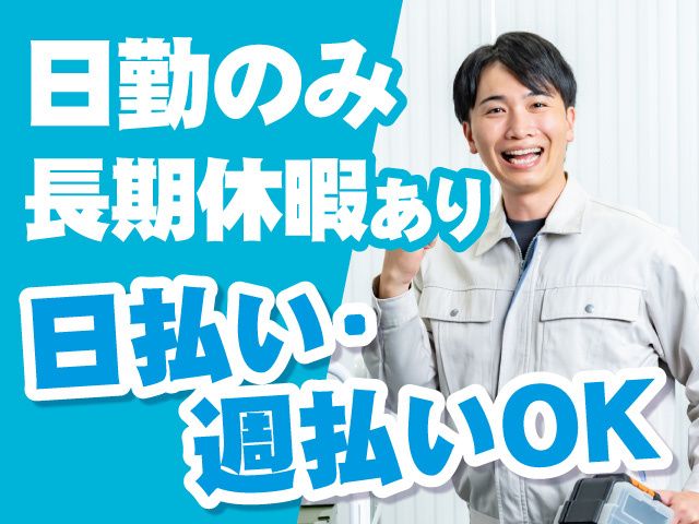 日勤のみ×残業少なめで生活安定! 幅広い年代活躍中!50代も活躍中です 日払・週払OK/寮あり