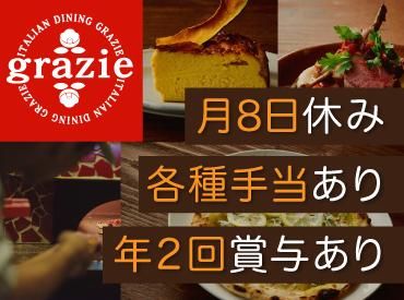 仕事内容 / 札幌の人気イタリアンダイニングが新業態としてNEW OPEN! 新店の立ち上げに携われる貴重なチャンスが待っています! \ イタリアンを中心に多彩な料理をカジュアルに味わい、お酒を楽しめるダイニング「グラッツェ」のホール業務をお任せします。 今回募集する新店の「南4条店」は新たな業態「ニューイタメシ酒場 grazie」としてオープンしました。 昨年11月にオープンしたばかりの新店ですが、早くもSNSなどメディアで話題を集めています。 Google口コミはありがたいことに2026年3月時点で309件(星4.8)の評価をいただいています✨ そんな人気店の仲間入りを果たそうとしている「ニューイタメシ酒場 grazie南4条店」のオープニングメンバーを募集します! *具体的なお仕事は・・・ お客様のご案内や料理のご提供、お会計、予約の受付など、一般的な接客のお仕事から始めていただきます。 慣れてきたら基本業務の他にアルバイトスタッフへの指導やシフト作成、売上管理などの店舗運営業務のサポートもお任せします。 ゆくゆくは店長などへの、キャリアアップを目指していただくことも可能です。 オープニング募集のため、新たな環境で働きたいとお考えの方にピッタリ。 自分たちの手で新店を創り上げていくという「今」しか味わえない達成感が、あなたを待っています! 【グラッツェは「ありがとう」を大切にするお店です】 店名のgrazie(グラッツェ)はイタリア語で「ありがとう」という意味。OPEN以来「夢とありがとう」を大切にしているお店です。 グラッツェでは誕生日や記念日などお祝いの日にご来店してくださるお客様も多く、そんなお客様のためにサプライズを全力でお手伝いさせていただいています。 そのため、誕生日や記念日などお祝い事のサプライズをする機会も多く、いつもとは違った接客を楽しめます! 接客経験を活かしつつ、「お客様に喜んでいただくためには?」を常に考え、アナタの接客や心遣いでお客様に幸せな瞬間を届けてください! 新店である「南4条店」もご来店してくださったお客様と一緒に働く仲間に感謝の気持ちを持ち、共にグラッツェでの素敵な空間を楽しんでいただける方を歓迎します。 *今回の募集では新店の『ニューイタメシ酒場 grazie 南4条店』での勤務となりますが、 『グラッツェ札幌駅JR55店(札幌駅徒歩2分)』 『グラッツェすすきの南3条店(すすきの駅徒歩3分)』 『グラッツェ北2条店(さっぽろ駅徒歩2分)』 『ニューイタメシ酒場 grazie 南5条店(9月OPEN)』 店舗の状況により上記いずれかでの勤務となる場合もあります。 また、別業態の新店舗の店長・料理長や本社勤務などのキャリアパスもございます。 【キャリアアップのチャンスもあります!】 当社は社員ひとり一人が、「将来何をやりたいのか」を大切にしています。 それを知るためにも定期的に行われるミーティングや年2回の面談で、上長と話し合える機会を設けています。 普段の仕事の悩みなどはもちろん、キャリアアップなどについての相談も大歓迎です! また、グラッツェ以外にもレモネード専門店や韓国商店など幅広くお店を展開をしているため、希望があれば別業態での経験を積むことも可能です。 他にも幹部候補・本社勤務などのポストも多数あるため、現場での経験を活かして飲食事業を展開する企業の中心人物を目指せます。 経験や能力に応じた仕事やポジションをお任せし、その後は希望や適性に応じて店長やSVなど、満足のいくキャリアを築いてみませんか?