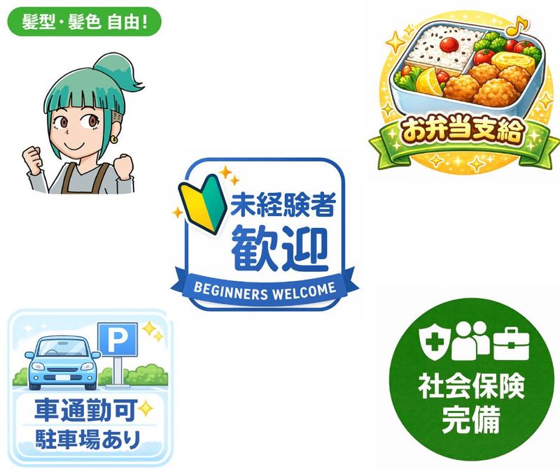 仕事内容 ■自動車バンパーの 塗装前準備をお任せします 【具体的には】 ・塗装しない部分を保護するマスキング作業 ・車体やパーツの養生(保護シート貼り) ・ホコリやゴミを飛ばすエアブロー作業 塗装の仕上がりを左右する大切な工程で コツコツ丁寧な作業が得意な方に向いています ●〇●〇●〇●〇●〇●〇●〇●〇 ・未経験でも始めやすいシンプル作業 ・モクモク作業が好きな方にピッタリ ●〇●〇●〇●〇●〇●〇●〇●〇 ※お仕事番号/Cok2880-000