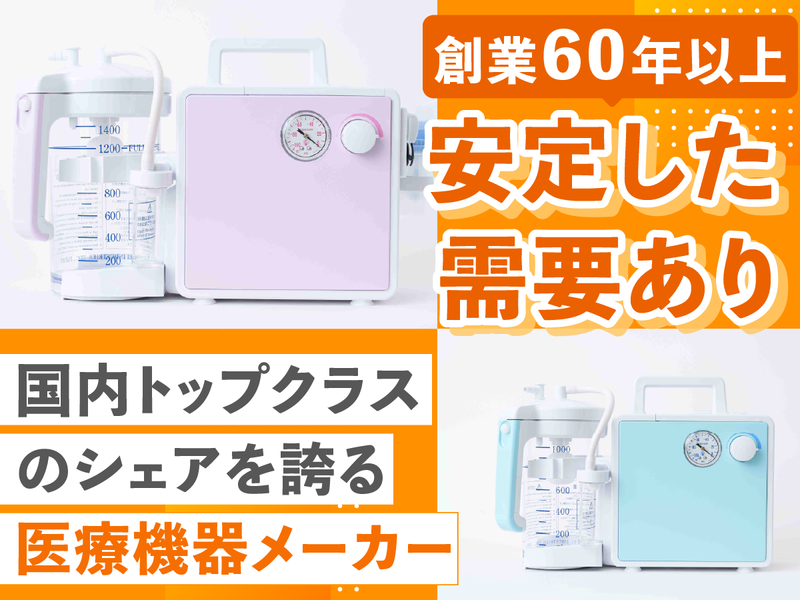 仕事内容 ==================== \未経験から医療機器メーカーの営業へ!/ “売る”より「製品の価値を伝える営業」 ==================== ◆既存顧客メインのルート営業 ◆ノルマほぼなし ◆テレアポ・飛び込みほぼなし ◆20代・30代の若手活躍中 ==================== 【仕事内容】 すでにお取引のある国内代理店様への ルート営業がメインです。 病院や介護施設とつながりのある 代理店様に向けて、自社製品の ご案内や説明、受注対応などを行います。 ※テレアポ・飛び込みほぼなし ※ノルマほぼなし <その他の業務> ・自社医療機器製品のご案内・説明 ・展示会での製品紹介 ・受注対応や簡単な事務処理 外勤は今後少しずつ増やしていく 予定ですが、多くても週2日程度。 訪問先は都内中心で、 無理な移動はありません。 ◆当社の営業スタイル  ̄ ̄ ̄ ̄ ̄ ̄ ̄ ̄ ̄ ̄ ̄ 一部新規開拓もありますが、 ほとんどが展示会メインです。 会社の広告塔として前に出るより 「自社製品の良さや、 価値を丁寧に伝えていく」 という営業スタイル。 製品をきちんと知ってもらうことに 集中でき、信頼関係を大切にした 営業ができます。 ◆入社後の流れ  ̄ ̄ ̄ ̄ ̄ ̄ ̄ ̄ まずは自社製品や業界について 基礎から学んでいただきます。 その後、先輩社員と一緒に 営業活動をスタート。 丁寧にサポートしますので、 未経験の方もご安心ください。 ◆ワークライフバランス抜群◎  ̄ ̄ ̄ ̄ ̄ ̄ ̄ ̄ ̄ ̄ ̄ ̄ ̄ ̄ ̄ 当社は、埼玉県認定の ”多様な働き方実践企業”です。 残業は月平均10~15h程度で少なめ◎ 完全週休2日制で、長期休暇もあり、 年間休日は123日! ライフスタイルに合わせた働き方を推進し 無理なく、長く続けられる環境づくりを 大切にしています。 ◆医療機器メーカーの安定業界  ̄ ̄ ̄ ̄ ̄ ̄ ̄ ̄ ̄ ̄ ̄ ̄ ̄ ̄ ̄ 創業60年以上の 医療機器メーカーとして、 医療現場の「安心・安全」を 支えてきました。 主力製品は、国内トップクラスの シェアを誇っています。 高齢化社会の進行とともに 今後も安定した需要が 見込まれています。 製品の「品質」を守ることは、 医療現場と患者様を守ること。 社会貢献性の高い仕事です。