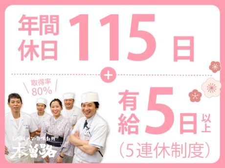 資格 ◎学歴不問・年齢不問 ◎ブランク復帰OK 【歓迎条件】 ■和食調理の経験をお持ちの方 ■料理の幅やアイデアを広げたい方 ■人をもてなすこと、喜ばせることが好きな方 ■更なるサービス向上のためにスキルを磨きたい方 ■将来独立を考えている方 ■和食の文化を広めたい方 【優遇する経験・資格】 ■和食経験者 ■会席料理経験者 ■ふぐ調理経験者 ■調理師免許お持ちの方 ■栄養士免許お持ちの方 …ブランクがある方も、もちろんOK! / 働くスタッフに話を聞きました。 \ 総料理長として働く父親の背中を小さい頃から見ていて、飲食業界に就職。前職は和食屋で勤務していました。知れば知るほど、もっと幅広い料理に挑戦してみたいという思いが強くなり、木曽路に入社。挑戦できる機会が圧倒的に増え、日々スキルアップを実感できています!(30代/中途入社) 小さな割烹料理店で勤務していたんですが、収入アップを目的に転職。上場企業の木曽路を選びました。ここに来てからは気持ちに余裕が持てるようになった気がします!(40代/中途入社)