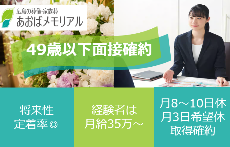 仕事内容 \ この求人のおすすめポイント! / ✅前職給与より 平均10%〜60%収⼊UPも可 ✅週休2⽇制◎⼟⽇休みも可能! ✅IPO間近!年商300億円⾒込み 成⻑企業のグループ会社の⼀員 ✅49歳以下全員⾯接確約!書類選考無し! ✅20代〜40代活躍中! ✅社会⼈未経験者も、第⼆新卒者も歓迎! ✅中途⼊社が9割☆働き易い環境です! ✅あなたを⾼く評価!前職給与⼤幅考慮 ✅ポジション多数!幹部候補を⽬指せます ✅経験者は⼈柄も含めて 給与を提案させていただきます! ✅葬儀部⾨は会館を年間100ホール出店 ──────────────────── ⭐新規スタッフを募集!⭐ ──────────────────── 仏壇や仏具の販売を行って 約半世紀となる「金宝堂」。 伝統・風習を大切にしながら、時代のニーズ に合わせて成長を続けています。 全国に150以上の式場を展開する 「金宝堂グループ」の一員、 「あおばメモリアル」で 『葬祭ディレクター』を募集◎ ──────────────────── ⭐あなたにお願いしたいお仕事⭐ ──────────────────── ⼤切なご家族を失ったご遺族に 親⾝に寄り添いながら ご葬儀のプランニングから お通夜・告別式の進⾏・運営、葬儀後の 法事のサポートを⾏っていただきます。 ⏩事前相談/営業 ⏩葬儀内容の打合せ ⏩式場準備とディレクション ⏩葬儀ディレクション ⏩故⼈のお⾒送り ⏩精算 ⏩運営補助業務 ⏩接客対応 ⏩アフターフォロー 初めは簡単な業務からお任せします! 定期的に地域の⽅々との 交流イベントも⾏っています! こうしたイベントを通して 地域の皆様と共に笑顔になれる瞬間を ⼤切にしています◎ ~1日の流れの一例~ 08:00 出勤/業務スタート 08:30 社内での準備 9:00 現場(顧客宅)への移動 13:00 ⽕葬開始 15:00 ⽕葬終了/⽚付け 16:30 帰社/事務作業 17:30 帰宅 ~入社後の流れ~ ⏩研修初⽇〜 会社・配属先・葬儀の知識などの説明 「当社が何をやっている会社なのか」から スタートして配属先や葬儀の知識、作法 などを座学で丁寧に説明していきます。 社会⼈未経験の⽅はビジネスマナーも イチから学んでいただけます。 ⏩1週間〜 ∟まずはアシスタントとしてデビュー 備品準備、会場設営・撤去、運営 サポートなどアシスタント業務を ⾏い全体の流れを覚えていきましょう。 ⏩先輩のもとでOJTスタート 葬儀についてのご説明や進⾏ フロー等のご説明など先輩のもと 基礎をしっかりと培っていきましょう。 現場の雰囲気に慣れつつ、 実践的なテクニックを⾝に付けましょう。 ⏩1ヶ⽉後 あなたがメインとなって提案を⾏い、 先輩が隣で適宜サポートします。 ⼤切なのはお客様に寄り添う気持ち。 ⼼を尽くして接していきましょう。 ⏩ゆくゆくは… 葬祭ディレクターの資格取得なども 取得いただき、現場管理や教育、 研修、採⽤、本社業務などにも 携わっていただきたいと考えております。 ──────────────────── ⭐働きやすさに自信あり⭐ ──────────────────── ⏰休日の急な呼び出しやお客様対応 ⏰ノルマが多く対応に手が回らない ⏰どうしても長時間勤務が発生する そんな悩みも一切ない環境です✨ 分業制を取り入れているので、 ひとりに仕事が集中することもありません。 同業界から転職されてきた方からも 「働きやすさに驚いた」と 声をいただいています。 ──────────────────── ⭐頑張りは昇給・昇格でしっかり評価⭐ ──────────────────── 葬儀業界の市場規模は 約2.1兆円(2023年)。 一般葬から家族葬へニーズも変化しており、 家族葬をメインで取り扱う当社への 期待も高まっています。 グループ全体で年間100ホールを新たに 出店していることもあり、 ポジションも多数あり。 続々とポジションが生まれているため、 未経験からのスタートでも、実際に 100万円以上昇給した先輩も大勢います。 昇給率も前年比10~60%の実績あり! これだけの昇給が実現できているのは、 社員の一人ひとりが 「良い仕事」を行っているから。 頑張りはしっかり評価し、 還元する社風です!