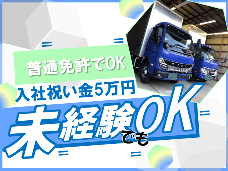 仕事内容 <2人1組で未経験でも安心> <さらに入社祝い金5万円を支給!> 主に個人宅へ冷蔵庫や洗濯機、テレビなどの大型家電から 電子レンジなどの小型家電を配送・設置します。 ・全車パワーゲート付きの車両で積み下ろしはラクラクです。 ・1日基本12件~14件の配送 ・配送エリアは神奈川県内中心で長距離なし ・全車ナビ付き、AT車 普通自動車免許で運転ができます! トラック初心者もOK! トラックドライバーデビュー応援します! 【いつもの1日の流れ】 07時50分 出社 08時00分 商品の積み込み開始 09時00分 お客様宅に到着 12時00分 およそ半分の配達が終了し昼食 15時00分 配達終了 16時00分 倉庫に帰庫して、業務処理 17時00分 退社 【当社について】 家電配送・エアコン工事を行っている当社。 1999年12月設立で26年目の会社です。 現在の社長は2代目となり 先代と二人三脚で会社を発展させてきました。 “お客様の立場で考え、喜ばれること。” この言葉を私たちのサービスと掲げて 社会に貢献する経営を目指します。