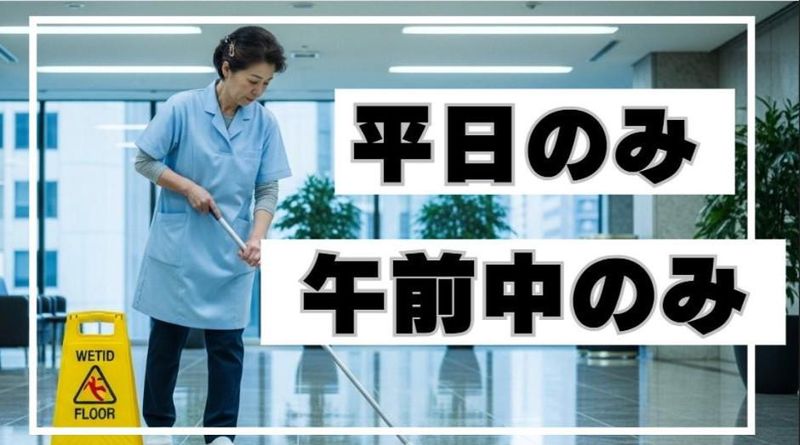 仕事内容 【仕事のポイント】 ★平日だけ・午前中だけの勤務で家庭と両立しやすい ★1日4.5時間、週5日勤務で月収約10万円前後 ★基本的に一人作業!自分のペースで働けます! ★重たい物を持つ作業はほぼなし! 公共施設(泉佐野市役所)での清掃・軽作業のお仕事です。 シニア世代・主婦・フリーターなど 未経験でも始めやすい内容です。 具体的には… ・各部屋の清掃業務 ・床面の掃き掃除 ・付帯するゴミ捨てなど モップやほうきを使う簡単な清掃が中心! 基本的に重い荷物を運ぶなどはありません。 モクモク作業なので、人と話すよりも 手を動かすことが好きな方にピッタリです。 【こんな方にオススメ】 午前だけの短時間勤務で、Wワークや家庭との両立にぴったり! 40〜50代の中高年やシニアも活躍中♪ 定年後のスタートも歓迎です。制服貸与・研修ありで 未経験でも安心!マンションや公共施設の巡回清掃 早朝勤務などの経験者にもお勧めです! 午前中だけ働けば、午後は自由時間♪ 土日休み 残業なし! 家事や趣味、病院など、自分の時間に充てられます。