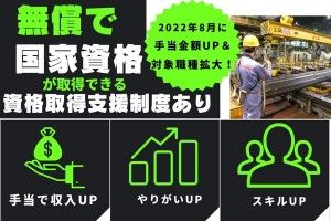 インフォメーション 《髪色・髪型自由》転職をお考えの方や、現在就職活動中の方など多数の職場の中から、あなたに合ったお仕事をご紹介させて頂きます!オンライン説明会随時開催中! ☆☆充実の福利厚生☆☆ 構内には広くてキレイな社員食堂があり、 早い!安い!は当たり前。 日替わりの豊富なメニューはもちろん、 ご当地ラーメンフェアといった企画も 人気です。きっとお昼のお楽しみに なるはずです! さらにキレイな独身寮をご用意。 家賃はなんと5,000円/月から! 食事3食で750円◎ 寮から職場までは 無料通勤バスで送迎します。 既婚者の方や結婚予定の方、 ご家族のある方は社宅が利用できます。 年間50万円の家賃補助で、ご家族の 暮らしもサポート!
