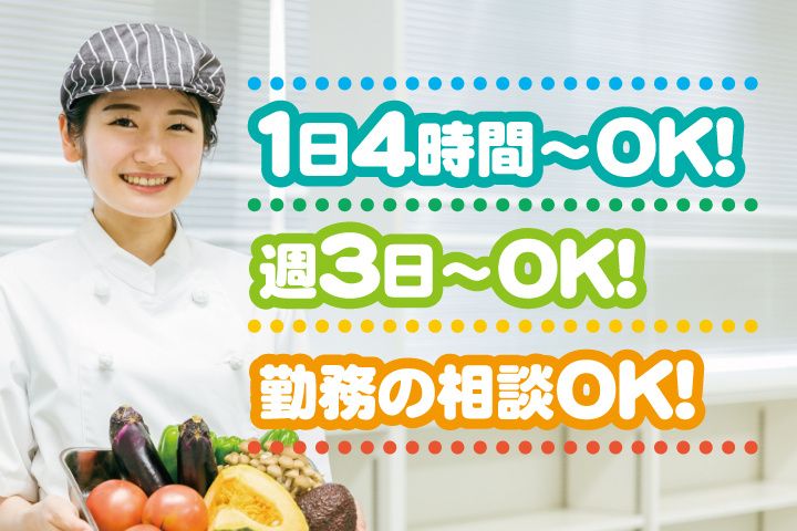 勤務時間 6:30~17:00の間で4時間以上 もしくは6:30~16:30の間で6~8時間 ※週3日~5日勤務