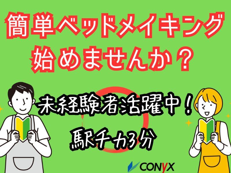 【仕事内容】 ビジネスホテルの客室の清掃スタッフ募集中! 【主な仕事内容】 ✅ベッドメイク ✅ユニットバス清掃 ✅アメニティの補充 サポート ===================== 充実したサポートが自慢です ===================== 創業70年以上のコニックスだからこそ、 働くスタッフへのフォロー体制は抜群です! ⭐覚えられるまで丁寧にしっかりとサポート! ⭐必要時には担当スタッフがすぐにフォロー! ⭐お休みも取りやすい環境です! 【求人ID-ALL10A】