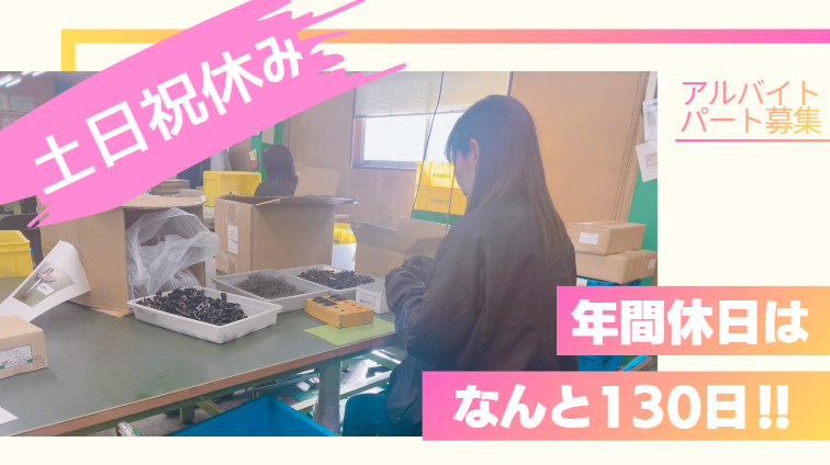 仕事内容 \大人気のコツモクWORKを始めよう/ ✅残業なし&有給消化100%! ✅誰にでもできる超カンタン作業 ✅必要な資格・経験は一切なし! 未経験からスタートしやすい環境が整っている当社で、貴方も心機一転新しいお仕事にチャレンジしてみませんか? 今回、あなたにはカーテンロール・ドアノブの中に入っているパーツ・扉の内側についている金具などの組立作業をお任せします! 組み立て作業と言っても、扱うのは自分の机で出来る小さなパーツなので力仕事や難しい作業は一切ありません! また座り作業なので、“力仕事は自信がない…”という方も安心してご応募下さいね♪ 1日の組立件数は決まっていますが、時間内に終わらなかったからといって残業する必要は一切ありません! 終わらなかったものは次の日に対応するので全然OK! 最初は対応できる件数が少なくて当たり前です。まずは手順書に沿って組み立てる事に慣れてもらい、徐々にスピードを上げていきましょう~! ときにはグループで教えてもらいながらわいわい楽しくお話しながら作業することもあります!! 作業に集中していたら、きっと退勤時間まであっという間ですよ(⋈◍>◡<◍)。✧♡ \20代~40代の女性スタッフが活躍中!/ 現在当社では20代~40代の若手・中高年スタッフが多数活躍してくれています! スタッフの応募動機は“コツモク作業が好きだから” “手先が器用って褒められるから、活かせそうと思って” “特別な資格が必要ないって書いてあったから”など様々! そんなスタッフが長く働き続けてくれる理由は…<<<社長の人柄がいいから>>> 事務所の前に冬場は中華まん屋さん、夏場はアイスクリームの屋台やキンキンに冷えたジュースなどを手配してくれるんです!その様子はまるで学生の文化祭のよう♪ 仕事中ですが、手を止めてホッと一息つく時間もあるんですよ~! だからこそ、“居心地が良すぎて辞められない”とスタッフから嬉しい悲鳴も聞こえてきており、実際に定着率の良さもバツグンなんです♪ ぜひ貴方もウチで新しいお仕事にチャレンジしませんか? ご応募お待ちしております( °̀ᗝ°́)و.*✧ \キャリアアップしたい方にもオススメ!/ 正社員登用制度をご用意しているので、まずはアルバイト・パートから始めてゆくゆくは正社員に…なんて事も可能です! 実際に入社から3~5年で正社員になったスタッフも何名か在籍しています! “経験は全くないけど頑張ってみたい…” “ブランクはあるけど…”という方も当社は全力でサポートしますので、安心して飛び込んで来て下さいね◎