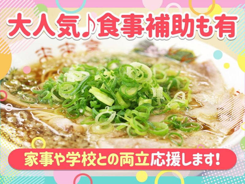 職場環境 ランチの時間帯は主婦さんや休みに入ってくれる大学生さんが活躍中♪ ピークは忙しいですが14時すぎたら落ち着いてきます。 タッチパネル注文で簡単なので飲食店未経験やブランク有の方も安心◎ 食事補助で外食気分も味わえるのでとっても好評ですよ♪ 喫煙所:喫煙所あり(屋外) 店内は全席禁煙◎ご家族連れにも人気のラーメン屋です♪