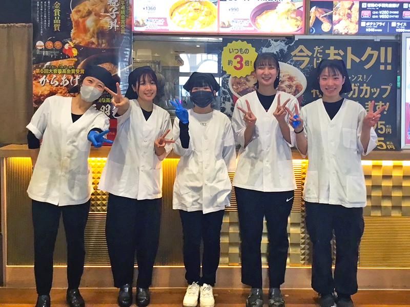 職場環境 現在は20~60代まで、主婦、学生、フリーターなど幅広いスタッフが活躍中◎ スタッフ同士の仲が良く、困った時はすぐに助けを求められる環境です。 ✨休憩中に一緒に買物に行くことも♪ ✨看板メニューの親子丼や唐揚げなどがお得に食べられる食事補助もありますよ♪ 喫煙所:喫煙所あり(屋外) フードコート内は禁煙です。 施設内では分煙を実施しています。