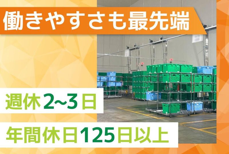 職場環境 業務の中には冷蔵・冷凍エリアでの 管理もありますが、温度帯ごとの担当制で 無理のない体制が整っています。 しっかりした休憩やローテーションもあり、 体調管理をしながら働けるように 配慮された、快適な職場環境です。