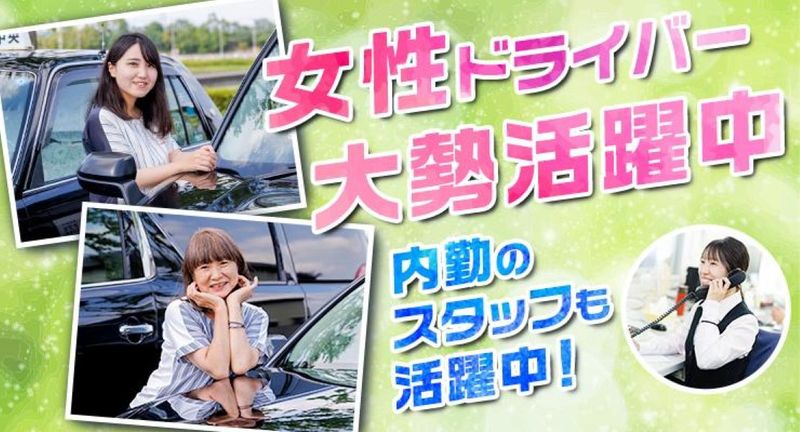 アピールポイント: 女性ドライバー45名在籍!! 群馬最大規模のタクシー会社で安定収入を実現!! 働きやすさと稼ぎやすさ、どちらも極めたタクシー会社! ・群馬県最大規模のタクシー会社 └ 無線配車 月に2万本以上、アプリも月2万本! ・女性も安心して働ける └ 約45名在籍!代表も女性で運行管理者にも女性スタッフがいます! ・圧倒的働きやすさ └ 働きやすい職場認証制度2つ星!
