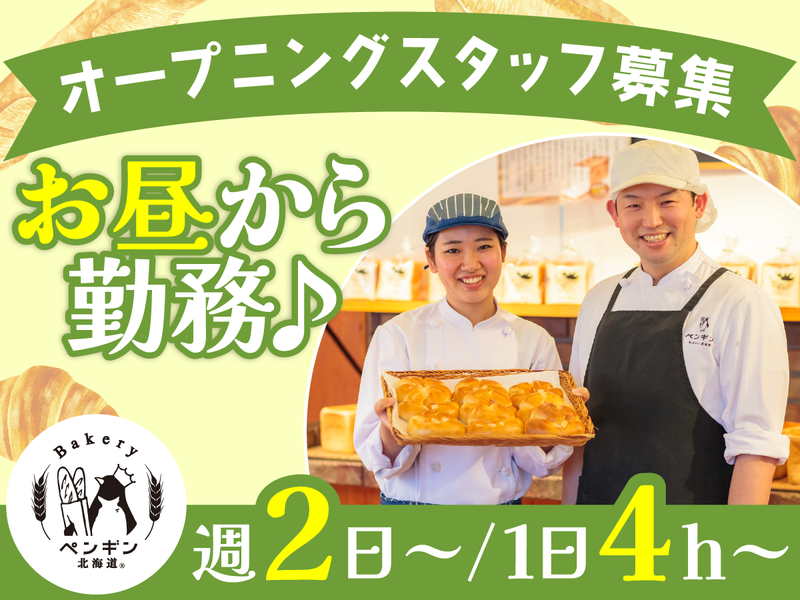 仕事内容 \横浜に4月20日(予定)新規OPEN!/ ✨未経験・学生さん・Wワーク大歓迎! ✨週2日~・1日4時間~OK! ✨研修後は社内規定で時給UPも! - 【仕事内容】 《製造》 ●生地の仕込み・成形・焼成・仕上げ ●サンドイッチの製造 など 《販売》 ●レジ対応などの接客 ●商品陳列 ●カウンターまわりの補助業務 など ================= ❖ 4月オープニングスタッフ募集 ❖ ================= みんな一緒のスタートで安心♪ 新しいお店をゼロから一緒に作れます! オープンの10日ほど前から研修を行うので、 接客未経験の方でも安心です◎ <ペンギンベーカリーについて> 2016年、北海道・恵庭市で誕生した ペンギンベーカリー。 「安心・安全で美味しいパンを届けたい」 という想いから、道産小麦を使い、職人が 一つひとつ心を込めて焼き上げています。 SNSやメディアでも話題沸騰中で、 日本カレーパン協会主催の 「カレーパン グランプリ」では5年連続金賞を受賞! 全国的にも注目される人気ベーカリー ブランドです✨ ==================== ❖ 午後からゆっくり!学校・副業と両立 ❖ ==================== 14:00~19:00の間で1日4時間~OK! 「午前中は学校」「昼までは別の仕事」 そんな学生さん・Wワーカーさんが 無理なく働けるよう柔軟に対応します! 14時以降スタートだから、朝はのんびり 準備できて、“学校→バイト”や“本業→副業” の流れが組みやすいのが魅力◎ 夕方からの勤務なので、授業やサークル、 他職のシフトとも合わせやすいです。 また、週2日~働けるので、 無理なく続けたい方にもぴったり。 プライベートと両立しながら、 自分のペースで安定収入を目指せます♪ ==================== ❖ こんな方にオススメのお仕事です ❖ ==================== ・焼きたてパンの香りに囲まれて働きたい ・新店舗の立ち上げに関わってみたい ・夕方の時間を有効活用したい ・プライベートの時間も大事にしたい ・接客が好き、人と話すのが好き ・コツコツ作業も楽しめる ・未経験からパン屋で働きたい ひとつでも当てはまる方は、きっと楽しく 働けます◎お客様とスタッフに愛される お店を一緒に作りましょう!