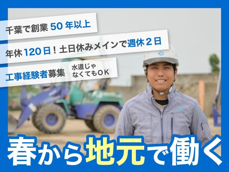 仕事内容 ============================ 経験を活かして働きやすい安定企業へ! 官公庁案件多数の水道施工工事スタッフ ============================ ≪経験者の方、大歓迎!≫ 何らかの工事現場経験がある方を募集! 土木や建設でも、設備でも構いません。 給排水衛生設備工事の経験者は即戦力として 優遇いたします!給与も経験を考慮◎ : 私たちオカモトは創業から50年以上にわたり、 上下水道や設備関連に関わる老舗企業です。 公共工事の入札に必要な格付けはトップクラス。 官公庁からの信頼も厚く、 長く安定した経営を実現してきました。 \キャリアUPを目指したい!あなたに/ ・管工事施工管理技士や土木施工管理技士、 給水装置工事主任技術者など、 これからのキャリアに必要な資格の取得も 受験料・講習会費用を全面サポート! 施工管理(現場監督)へのステップUPも支援します。 ・管工事は年々生み出される新しい技術や工法も 学ぶことが出来ます!着実に知識が身につきますよ。 \家族との時間も欲しい!あなたに/ ・遠方での工事はほとんどなし! ・千葉県内の現場がメイン ・官公庁案件多数!17時終業&残業ほぼなし ・年間休日120日以上!長期休暇あり ≪お任せする仕事≫ 設備工事/水道工事における配管工事 その他給排水、衛生設備工事、土木工事の施工など 前職でのご経験とスキルに応じて 業務を始めていただきます。 ベテランの方はぜひ即戦力としてご活躍ください。 アピールポイント: 給与:日給1万3000円~ 月給273,000円~(日給月給制です) 例)入社3年目/月収32万円以上 (日給1万3750円×月21日+皆勤手当) そして、働きがいが感じられるように 残業手当・役職手当・皆勤手当・緊急出勤手当 などしっかりと手当をご用意しています。 賞与年2回・昇給年1回で頑張りも評価! ステップアップでしっかり稼げます。 3年目で年収500万円以上も可能! <キャリアアップも可能!> 工事スタッフの即戦力としてスタートし、 工事を管理する現場代理人(施工管理)にキャリアUP! さらにマネジメントスキルを磨くことで、 経営戦略に関わる部長など管理職として 40代で年収600万を目指すことも可能です! ・・・会社概要・・・ 株式会社オカモト 千葉県市原市五井中央南一丁目11番地8 TEL 0436-22-1188(代表) 従業員数 45名 事業内容 上下水道工事、空調設備工事、衛生設備工事 取引先 千葉県企業局、市原市、千葉県 ***オカモト・グループ*** 岡崎設備工業株式会社 千葉県市原市君塚1-8-6 オリエント工業株式会社 千葉県市原市青柳北4-5-7 株式会社ナカニシ管工 千葉県市原市五井中央南1-11-8