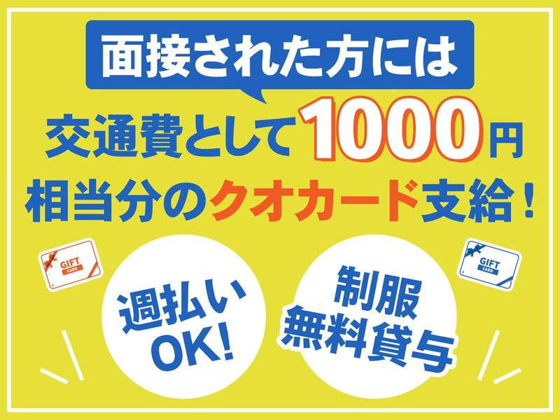 仕事内容 ★週3日~4日で勤務可能♪(扶養内OK) ★夕方から夜にかけてのお仕事◎ ★自分の時間も大切にできる◎ ★適度な運動で健康維持にも◎ ★丁寧研修で未経験も安心スタート 【 お仕事内容は 】 施設内外のカゴ・カートの 回収・整理がおもなお仕事です。 ・買物カゴやショッピングカートの回収 ・所定の置き場まで運んで整列・整理 ・使用中のカートが不足しないよう巡回 ・不正防止の為の巡回 など、お客さまが快適に お買い物できるよう サポートをお任せします。 経験や知識は一切不要です! 40代、50代、60代 シニアの方まで、幅広く活躍中です。 まずお気軽にお問い合わせください。