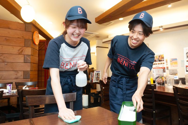 仕事内容 安定して稼ぎたいけど 学校の授業や友達と遊ぶ予定 家族の予定も目いっぱい楽しみたい! そんな思いをかなえられる✨ 週1シフト申請で予定管理がしやすい BENIYAで一緒に働きませんか? ※今回は大学生以上の募集となります! 高校生は給与が異なりますのでご注意ください。 ――――――――――――― ちょっと気になるな、と思ってくださった方へ! \もっと!BENIYAで働きたくなる/ イチオシポイントはここだ!✨ ⭐⭐落ち着いた雰囲気のお店⭐⭐ BENIYAは立川や阿佐ヶ谷で長く愛されてきた ハンバーグレストランです。 いらっしゃるお客様は 地元のご家族やお子様連れ 近くに勤務されているサラリーマンの方など ガヤガヤした環境よりも落ち着いたお店で働きたい と考えている方に最適な環境です。 ⭐⭐シフトは毎週申請⭐⭐ BENIYAではシフトを毎週申請できます! 月ごとのシフト申請だと 急に入った飲み会や友達からのお誘いに バイトを理由でお断りすることも… 「シフトがもっと柔軟だったらな」 なんて気持ちになりますよね。 BENIYAではアルバイトの皆様にも プライベートを充実させてほしい! そんな思いで毎週シフトを申請できる制度を導入しました。 BENIYAで働くようになってから プライベートが充実しました!というスタッフの声も! ⭐⭐シフトは21時まで⭐⭐ バイト後に家に帰って ゆっくりお風呂に浸かってアイスをかじって… それでもまだ22時半!? バイトから帰るともう寝なきゃ… という気持ちになるとなんだかもったいない気もしますよね。 バイト後のゆっくりまったりタイムも余裕の21時退勤! 稼げる&早く帰れる! 「働きやすいポイント」として 先輩スタッフから一番好評なのは この勤務時間です。 ――――――――――――― お仕事内容はいわゆる 「飲食店でのお仕事」ができればOK ◆オーダー取り ◆食事配膳 ◆ドリンク配膳 ◆盛り付けなど調理補助 などなど 飲食店での勤務経験や バイト経験が無くても大丈夫、と 先輩スタッフも胸を張って言えます。 特別な業務は一切ありません。 みんな未経験からのスタート! それでも難なく続けてこれました。 できるかな…と不安に思う事は一切ありません。 絶対大丈夫! シフトに入るにつれ慣れていって 気づいたら余裕でこなせるようになっています。 ――――――――――――― 株式会社紅矢について 紅矢は東京・神奈川に4店舗を構える ステーキ・ハンバーグの専門店です。 おいしいお肉を リーズナブルに・気軽に 皆様で楽しんでほしい そんな思いで運営をしてまいりました。 お客様への質の高いサービス提供のため スタッフへの育成や 働きやすさの実現にも力を入れています。 一緒に働ける方々をお待ちしておりますので ぜひ、お気軽にご連絡をいただければと思います。