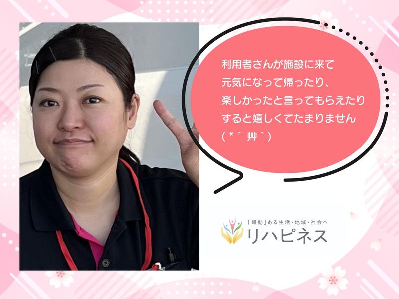 仕事内容 ≪弊社のポイント≫ ・未経験大歓迎!!他業種からの入職も大歓迎\( 'ω')/ ・資格取得支援全額補助!!頑張るあなたを全力で応援(^^♪ ・賞与あり(3.0か月)!平均より多めの給与で安定した正社員! ・急なお休みにも柔軟に対応!子育てママ(パパ)には大助かり♡ ・研修制度充実!新入社員には週一度の面談あり!不安なことは一緒に解決♪ 【施設の特徴】 リハビリに特化した1日型・半日型の複合型デイサービス施設です°˖✧◝(⁰▿⁰)◜✧˖° 2階建ての施設で定員は55名! 1階は半日型、2階は一日型のデイサービス! 平均要介護度は1.3 【スタッフについて】 合計:32名(男性:8人、女性24人) 年齢層:20代・30代・40代・50代・60代活躍中 働きやす環境を整えるための増員募集になります! \以下より弊社のことをより理解して頂けます♪/ *Instagram* https://www.instagram.com/rehappinessclub?igsh=MXc2MXFnZjRseWJxcw%3D%3D&utm_source=qr *HP* https://rehappiness.com/ 【仕事内容】 通所介護事業における、リハビリの補助・体操・送迎・軽介助・入浴介助をお任せします。 ※業務内容については柔軟に相談可能! エリア:施設から30分以内 車:普通車(AT車)からハイエース